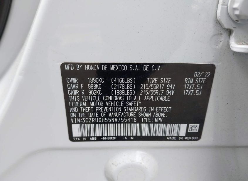 - VIN: 3CZRU6H55NM755416