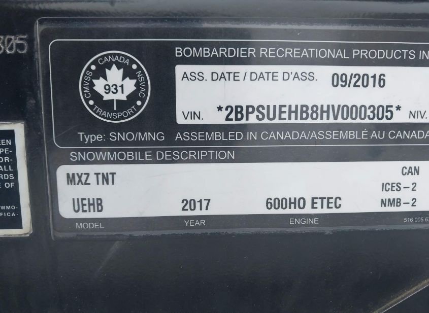 - Тип транспорта: SNOWMOBILE