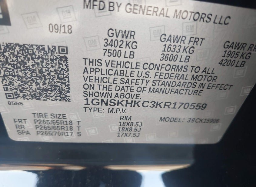 - VIN: 1GNSKHKC3KR170559