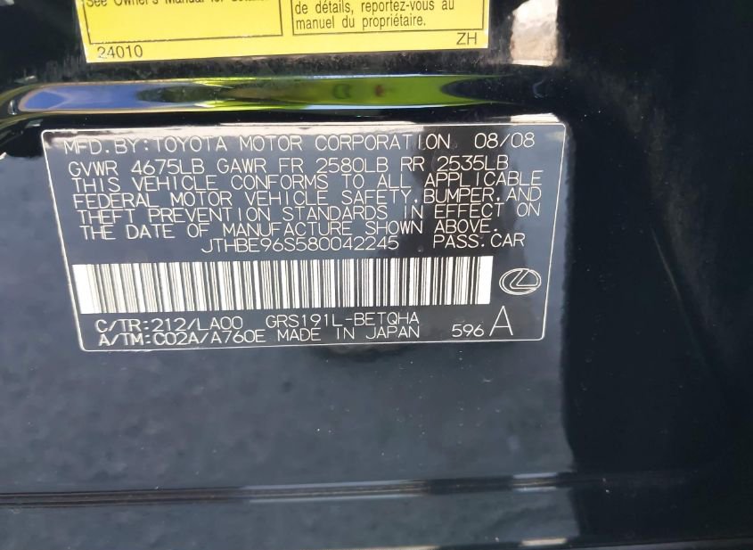 - Название лота: 2008 LEXUS GS 350