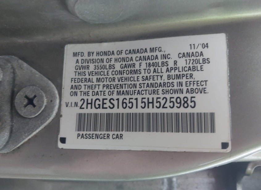 - VIN: 2HGES16515H525985