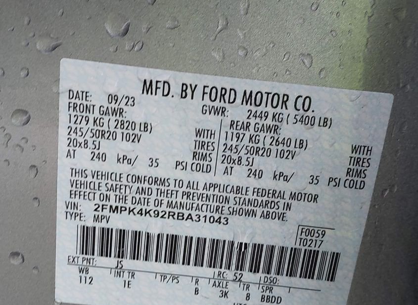 - VIN: 2FMPK4K92RBA31043