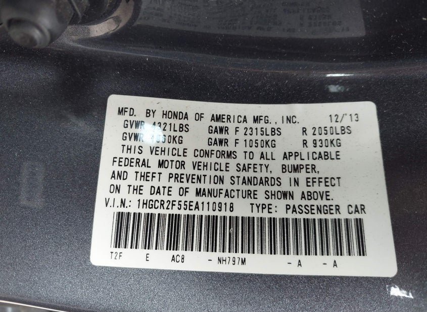 - VIN: 1HGCR2F55EA110918