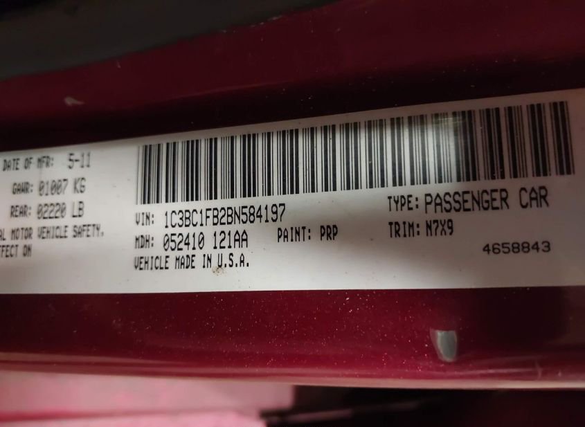 - VIN: 1C3BC1FB2BN584197