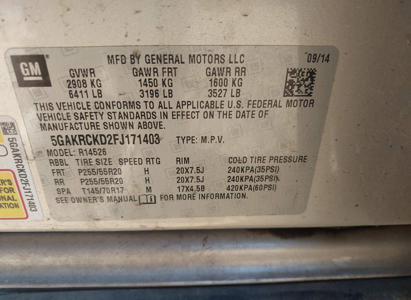 - VIN: 5GAKRCKD2FJ171403