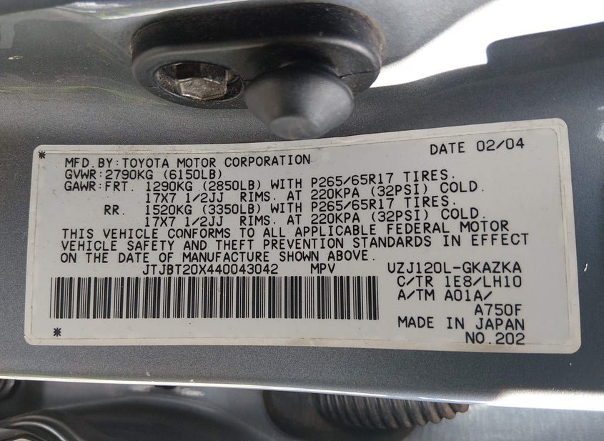 - VIN: JTJBT20X440043042