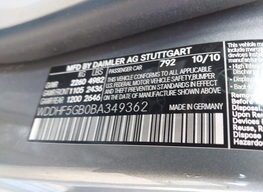 - VIN: WDDHF5GB0BA349362