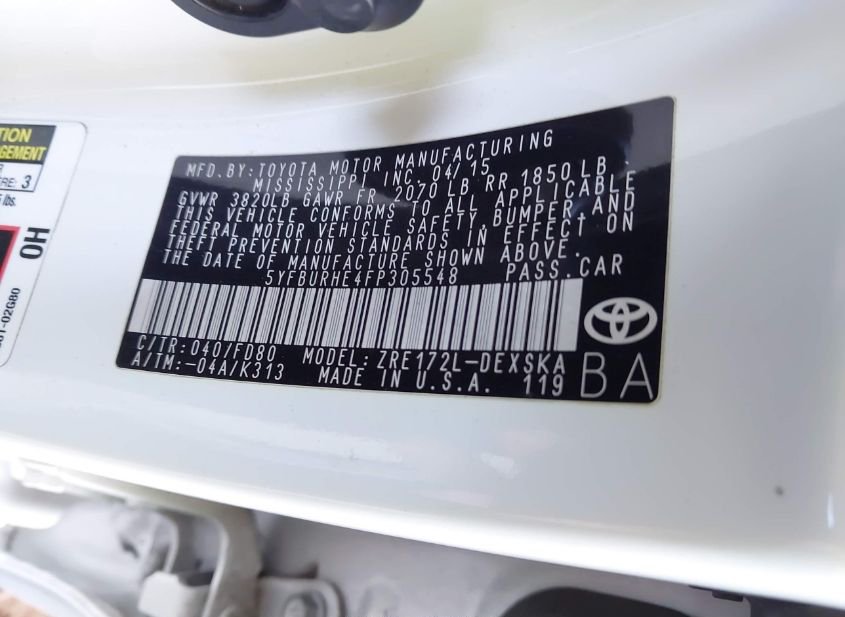 - VIN: 5YFBURHE4FP305548