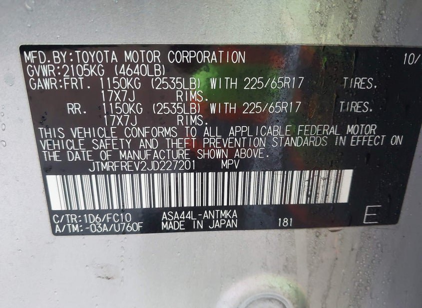 - VIN: JTMRFREV2JD227201