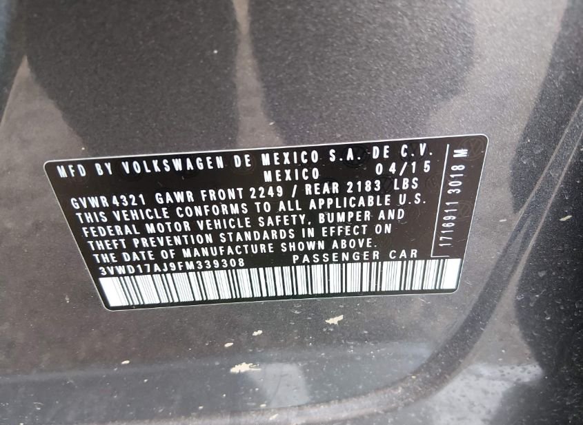- VIN: 3VWD17AJ9FM339308