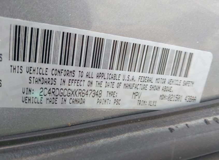 - VIN: 2C4RDGCGXKR647348