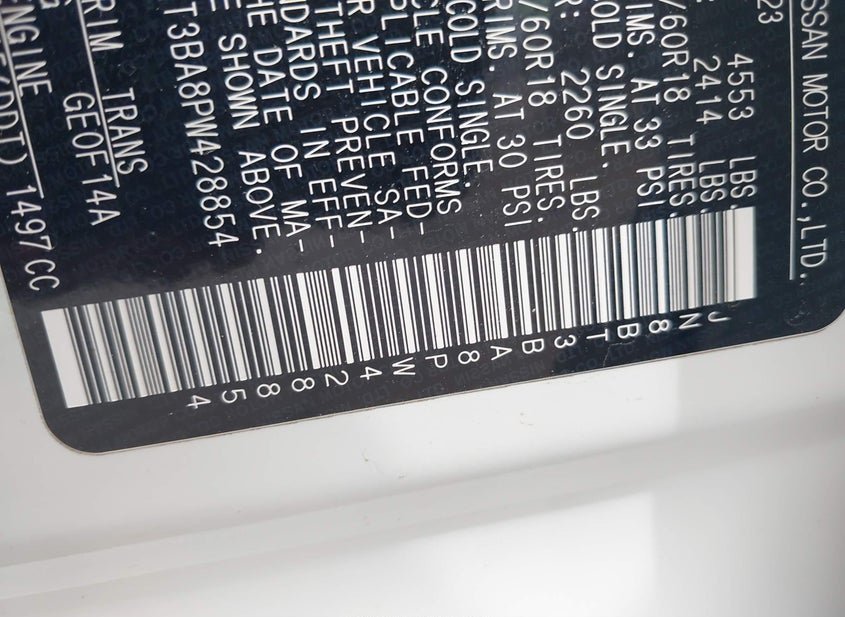 - VIN: JN8BT3BA8PW428854