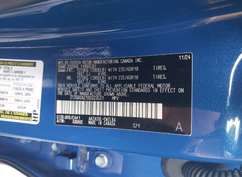 - VIN: 2T2GDCAZ1SC023521