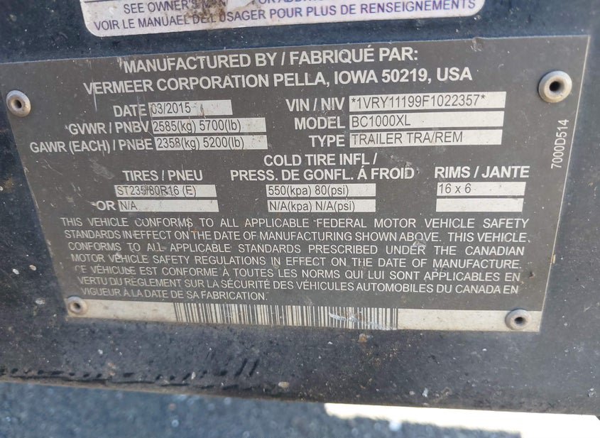 - Название лота: 2015 VERMEER MFG. CO. VERMEER MFG. CO.