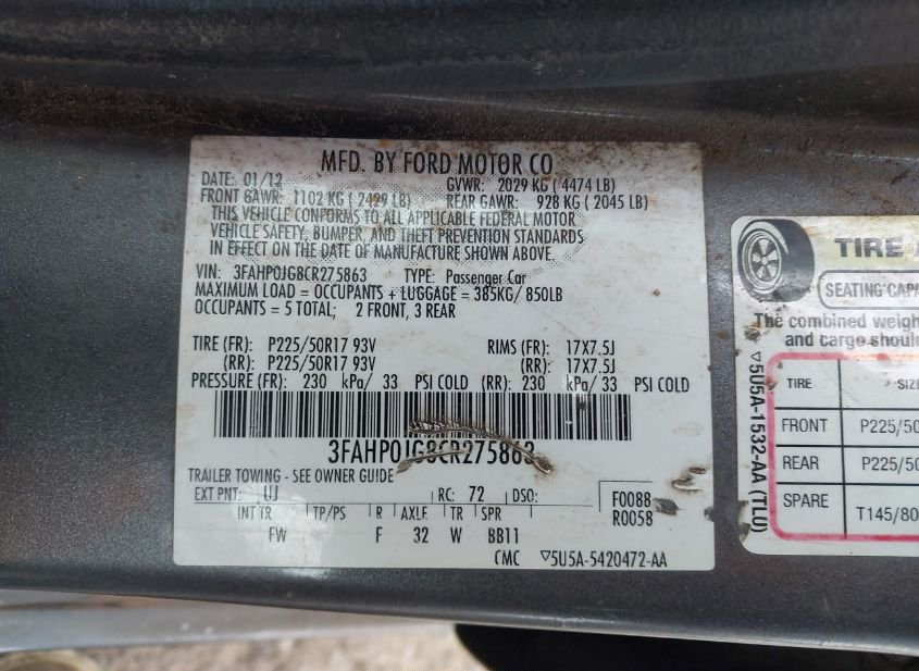 - VIN: 3FAHP0JG8CR275863