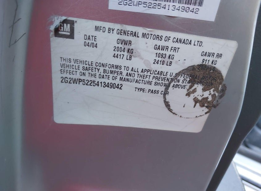 - VIN: 2G2WP522541349042
