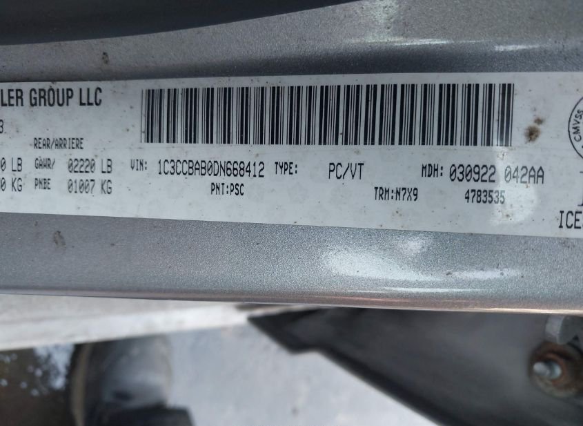 - VIN: 1C3CCBAB0DN668412