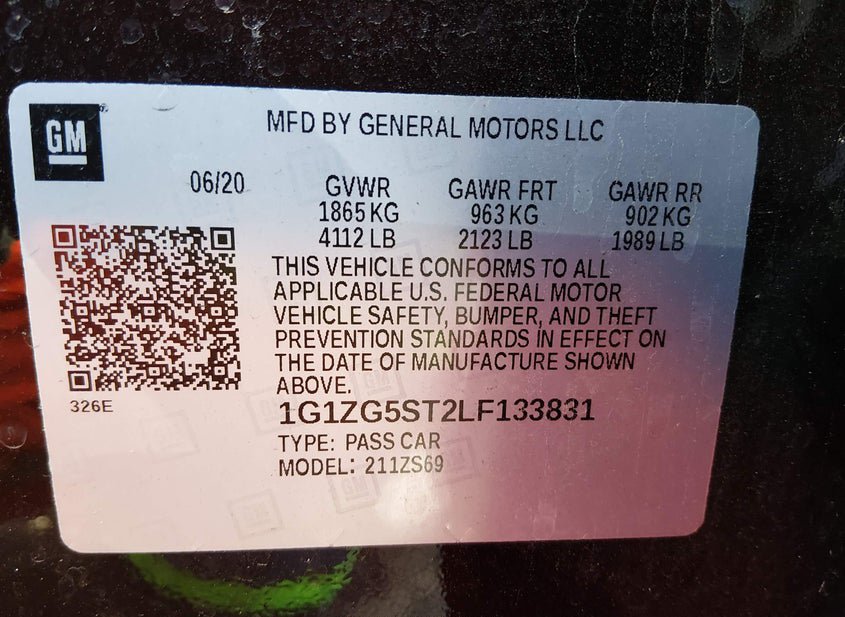 - VIN: 1G1ZG5ST2LF133831