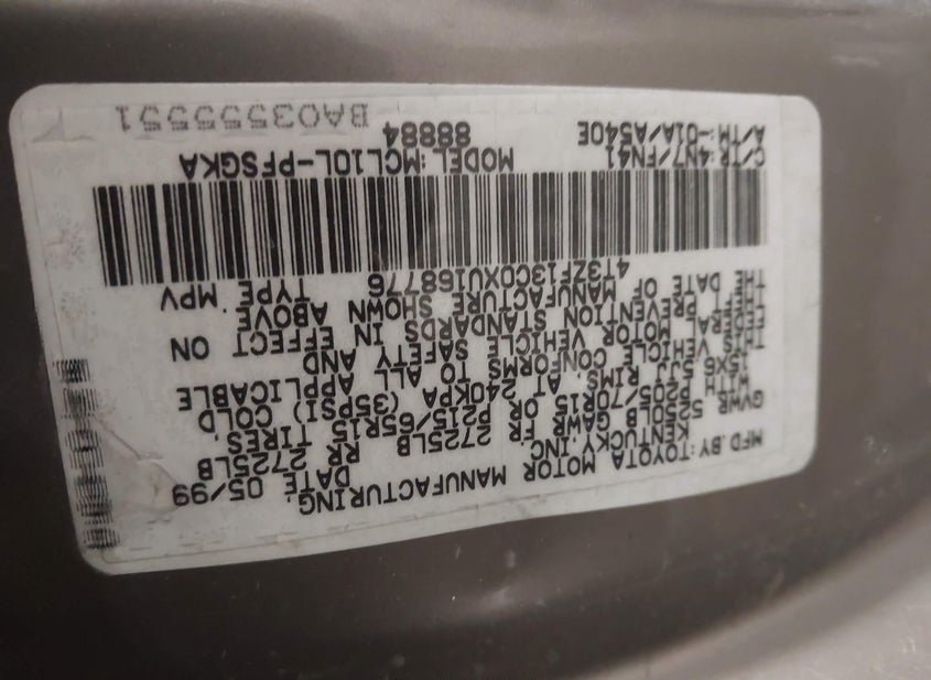 - Название лота: 1999 TOYOTA SIENNA LE