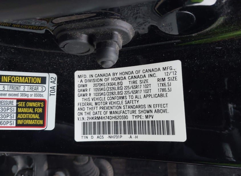 - VIN: 2HKRM4H74DH620590