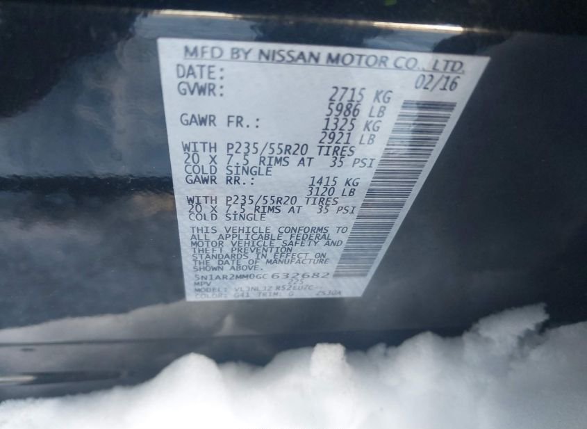- VIN: 5N1AR2MM0GC632682
