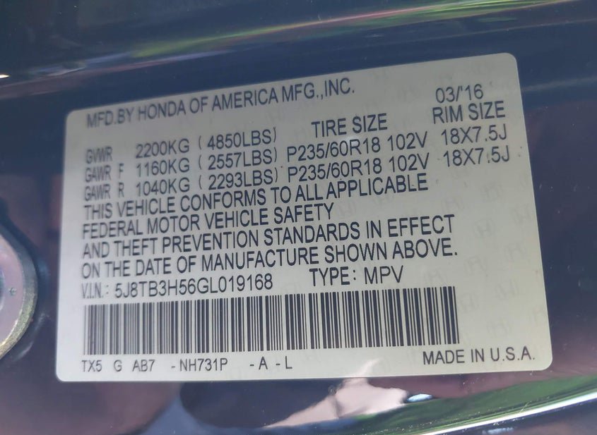 - VIN: 5J8TB3H56GL019168