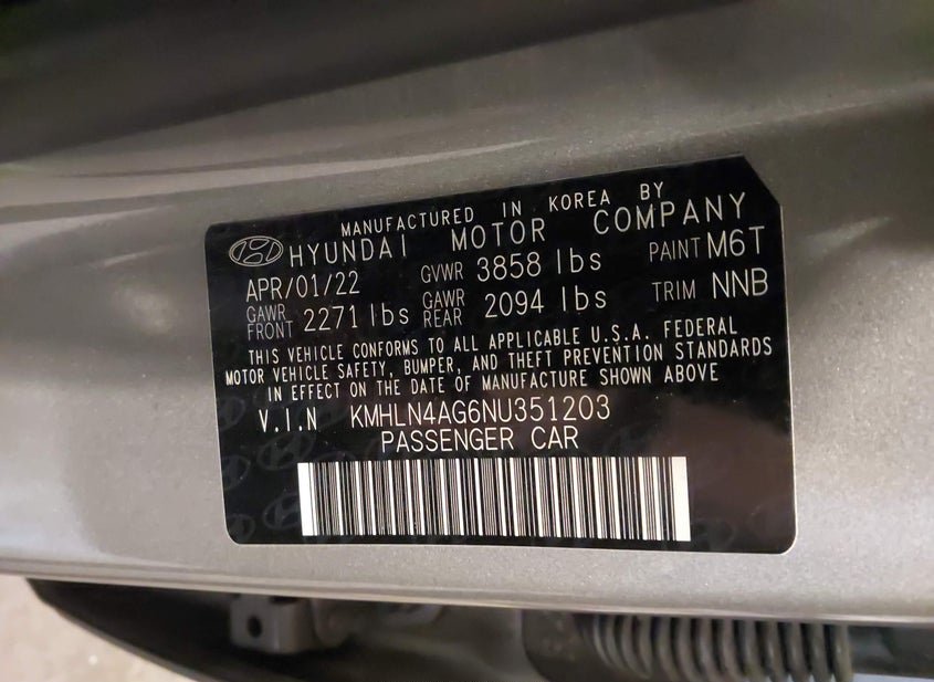 - VIN: KMHLN4AG6NU351203