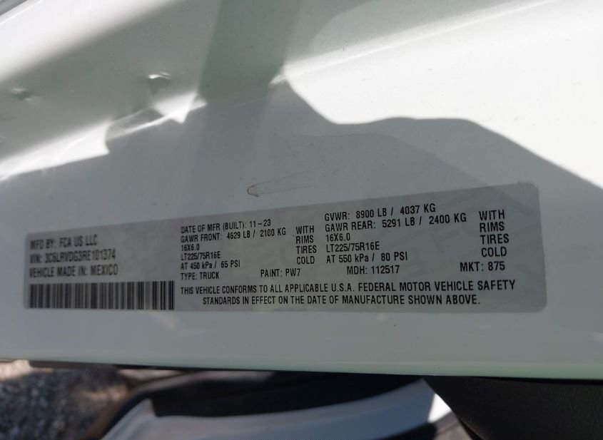 - VIN: 3C6LRVDG3RE101374