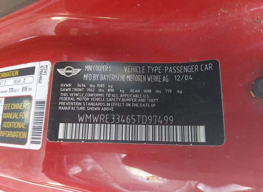 - VIN: WMWRE33465TD97499