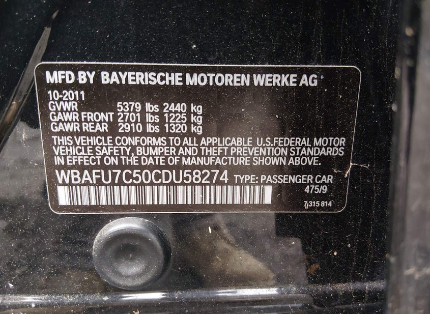 - VIN: WBAFU7C50CDU58274