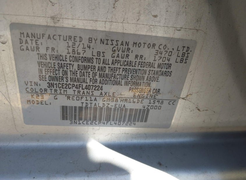 - VIN: 3N1CE2CP4FL407224
