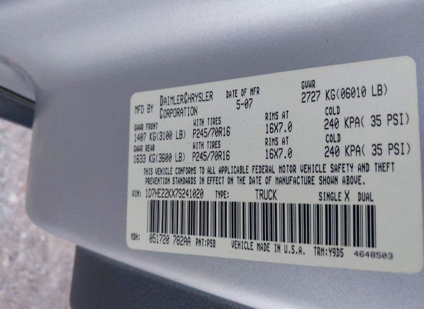 - VIN: 1D7HE22KX7S241020