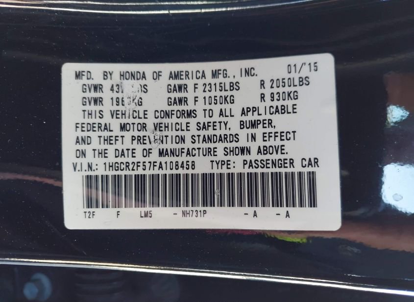 - VIN: 1HGCR2F57FA108458