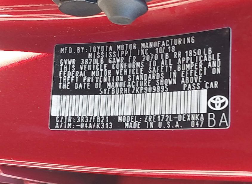 - VIN: 5YFBURHE7KP909895