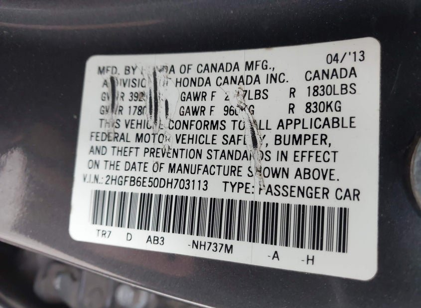 - VIN: 2HGFB6E50DH703113