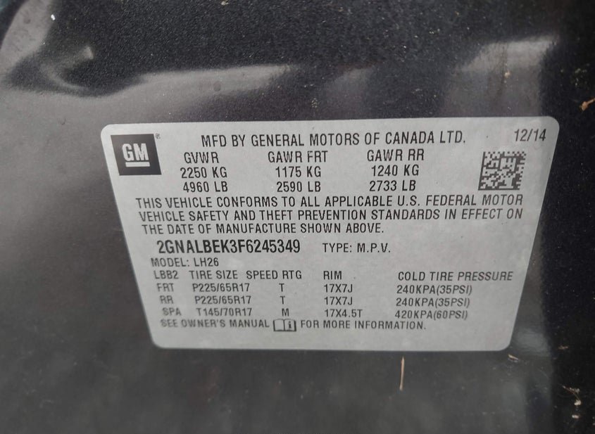 - VIN: 2GNALBEK3F6245349