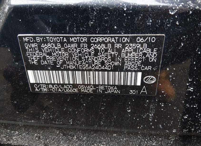 - Название лота: 2010 LEXUS ES 350