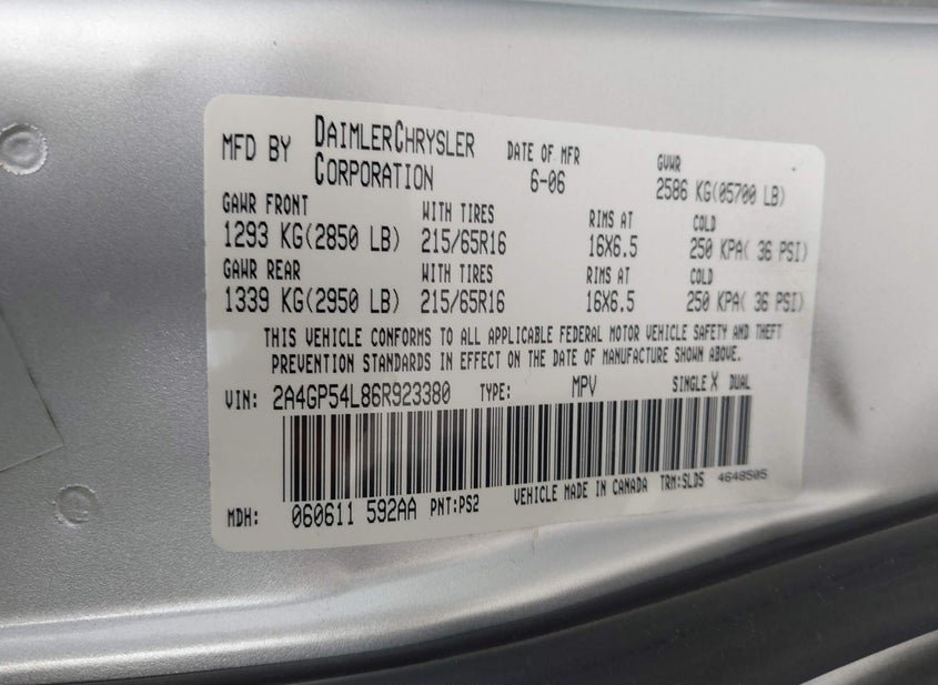 - VIN: 2A4GP54L86R923380