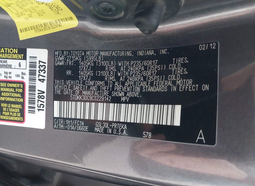 - VIN: 5TDKK3DC9CS229142