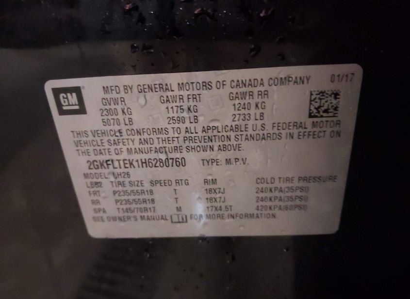 - VIN: 2GKFLTEK1H6280760
