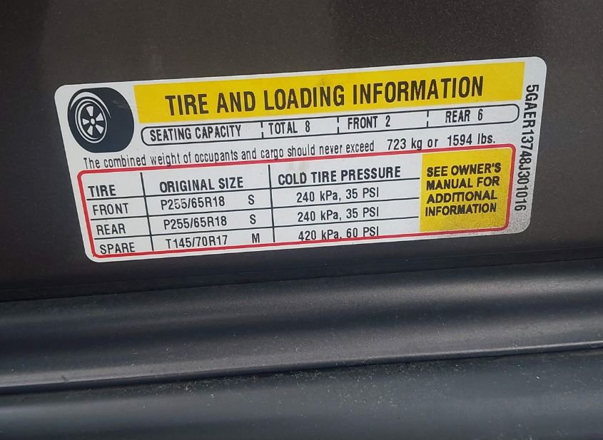 - VIN: 5GAER13748J301016