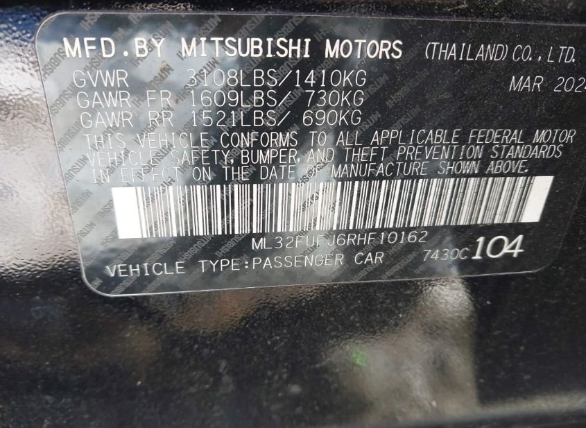 - Название лота: 2024 MITSUBISHI MIRAGE G4 LE