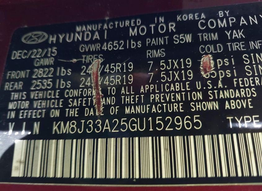 - VIN: KM8J33A25GU152965