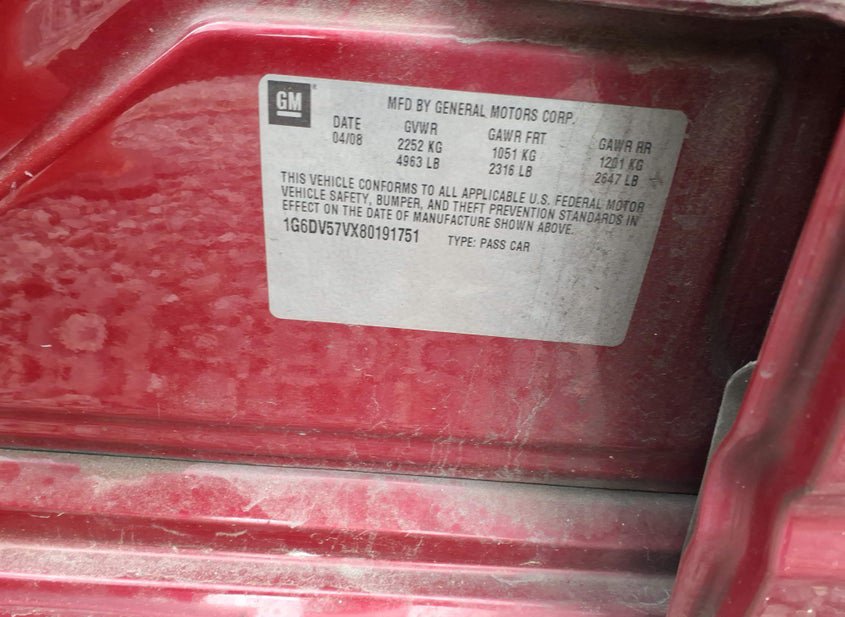 - VIN: 1G6DV57VX80191751