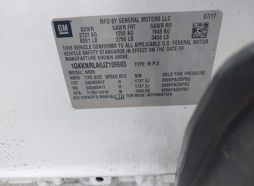 - VIN: 1GKKNRLA6JZ106683