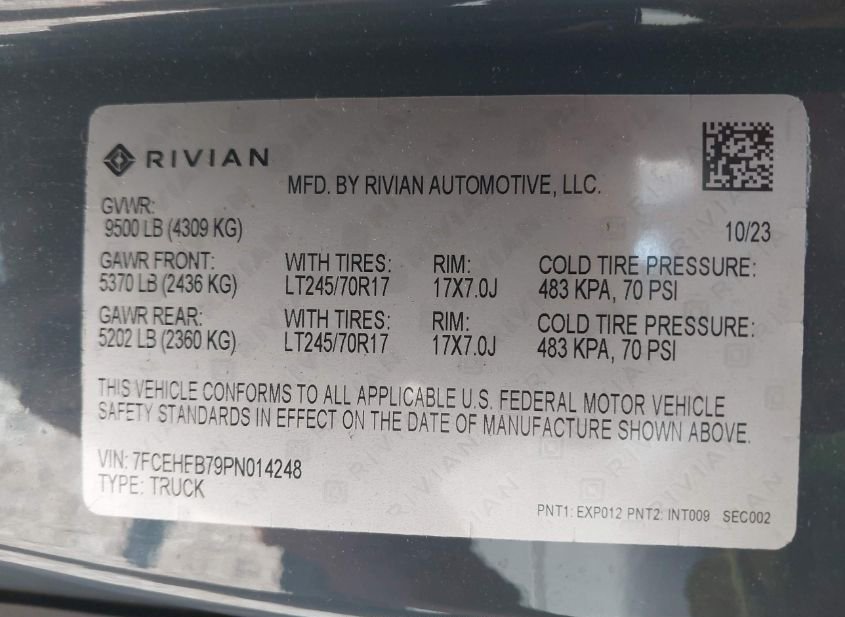 - Название лота: 2023 RIVIAN DELIVERY 700
