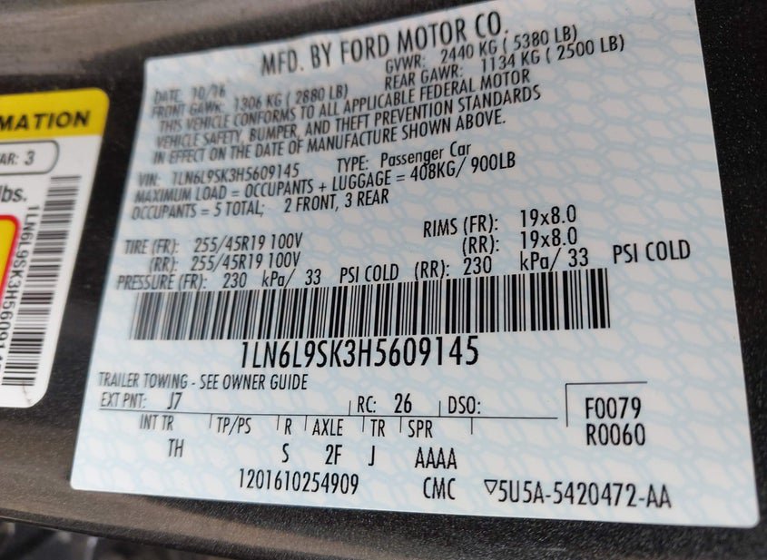 - VIN: 1LN6L9SK3H5609145