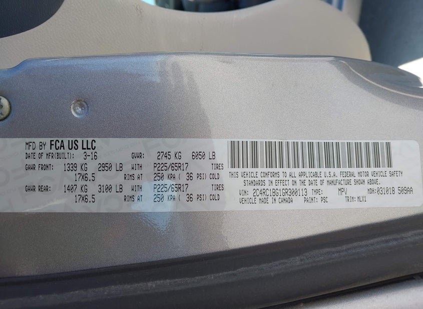 - VIN: 2C4RC1BG1GR300113