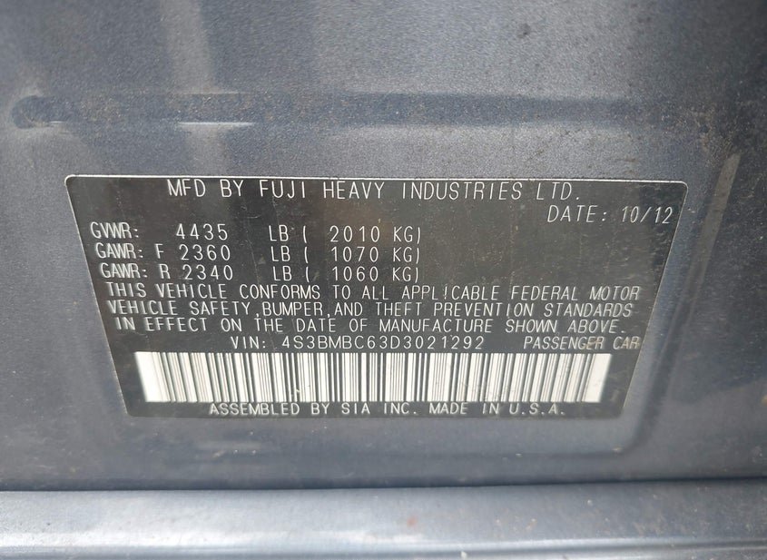 - VIN: 4S3BMBC63D3021292