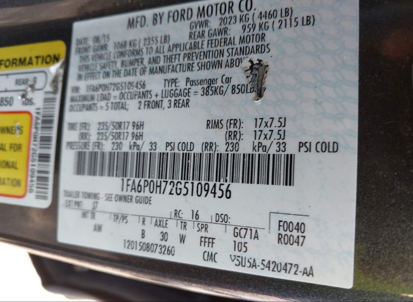 - VIN: 1FA6P0H72G5109456